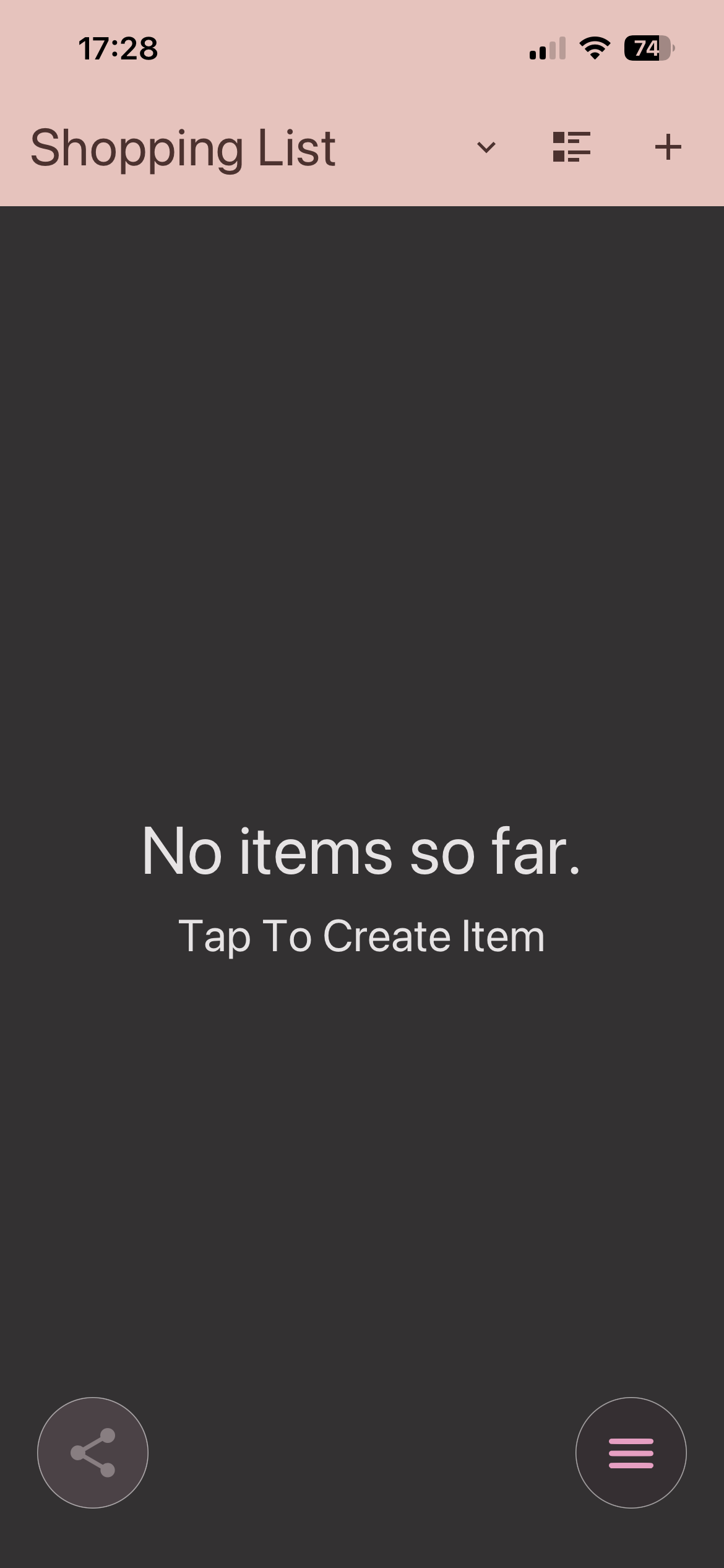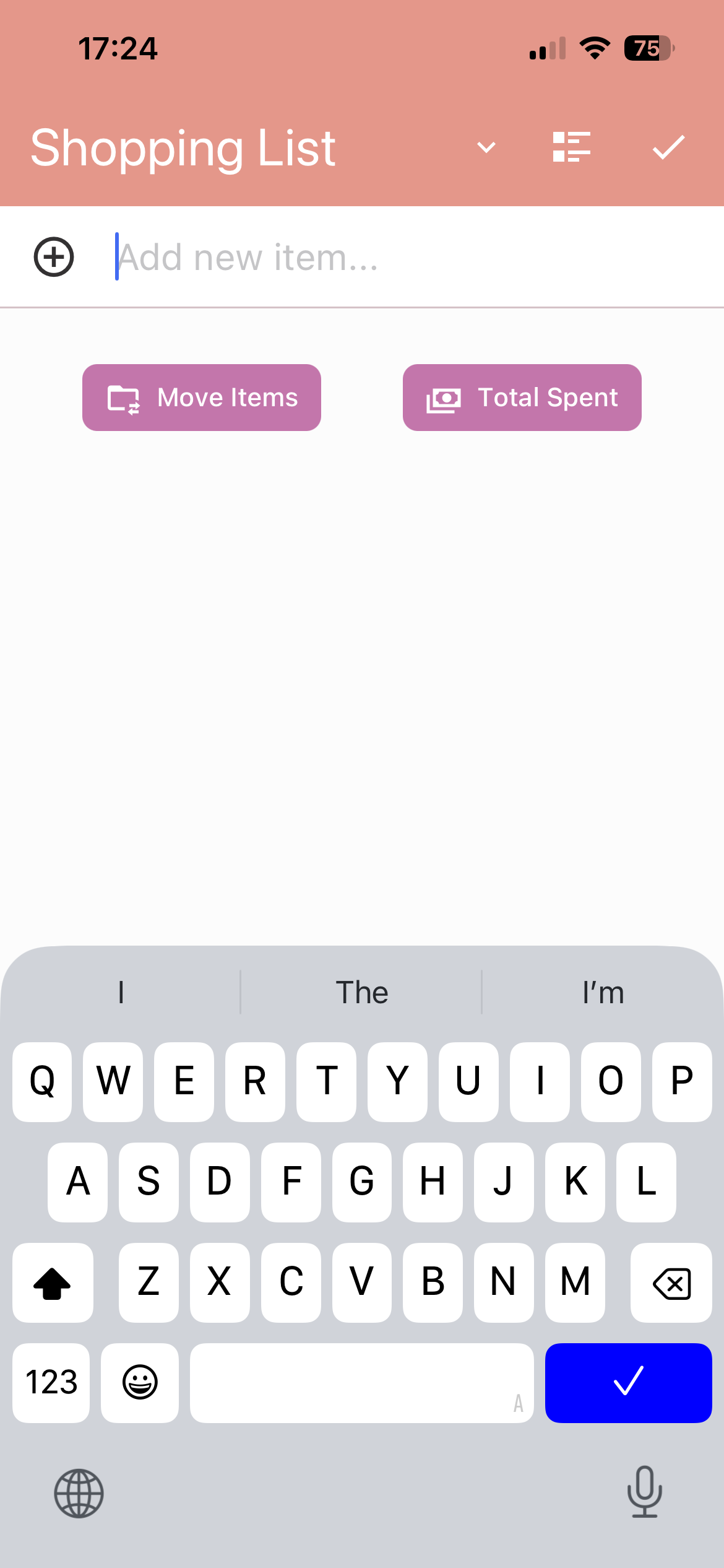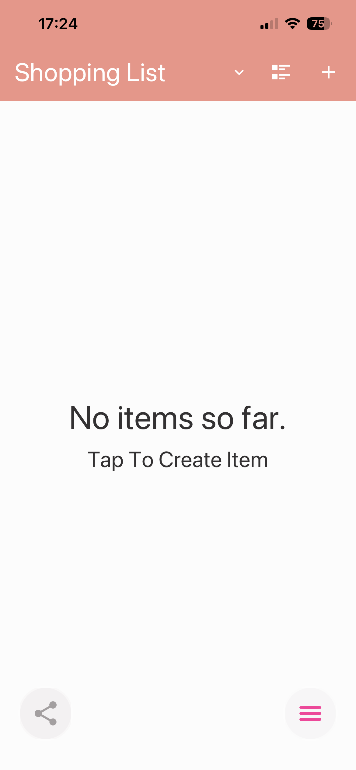 - 2. Your First List: You'll land right on your default empty "Shopping List". Simply tap anywhere on the empty screen or use the '+' icon to start adding items.