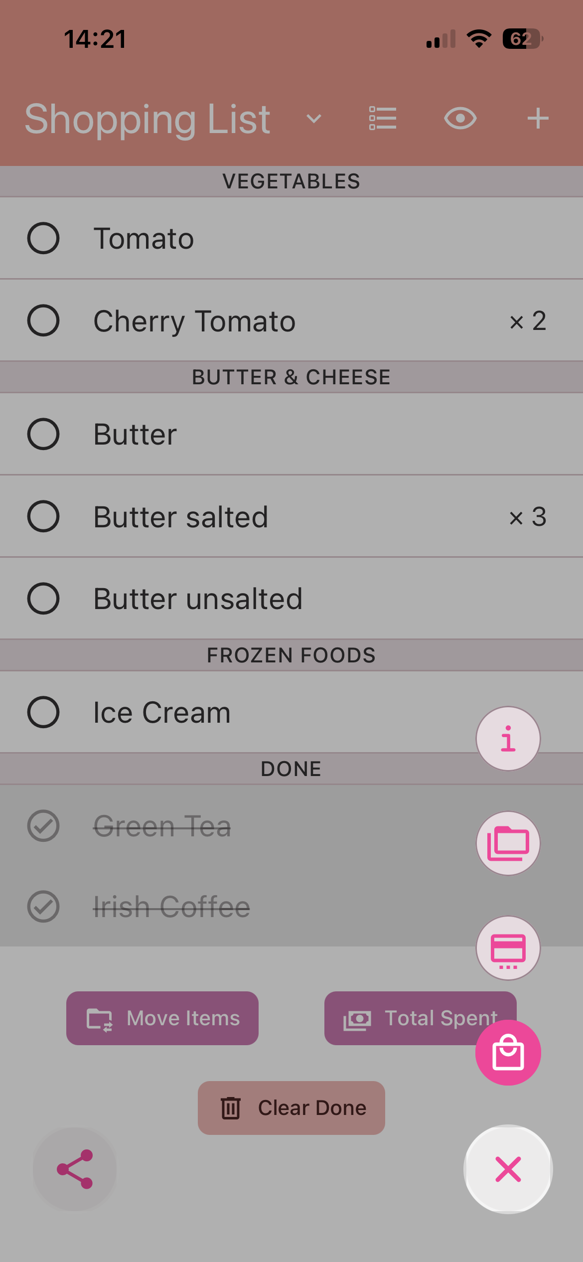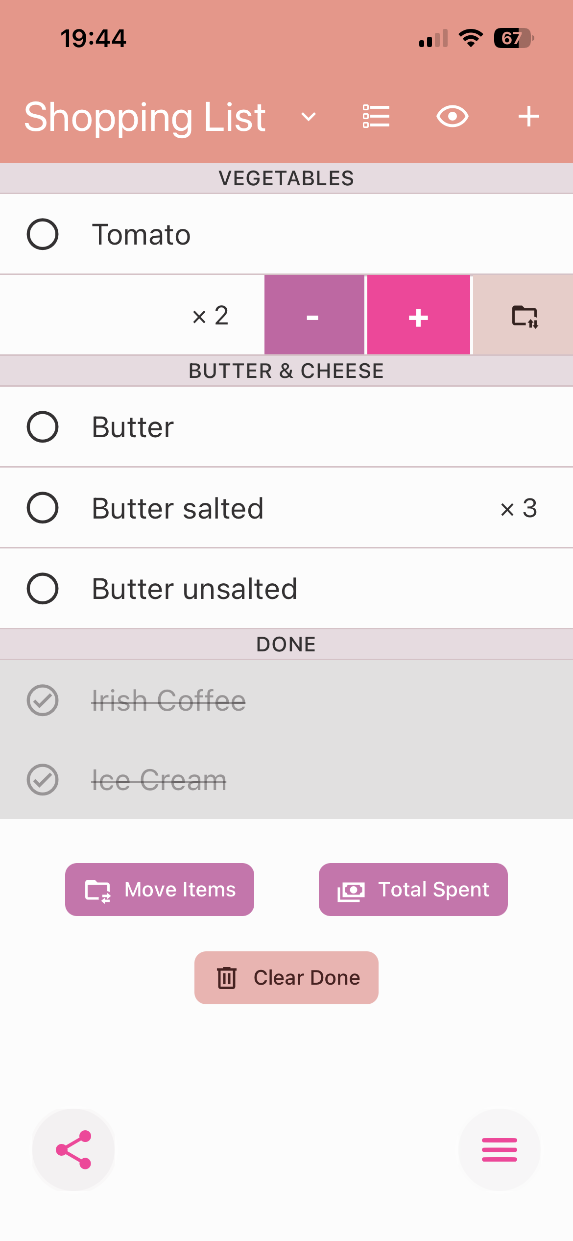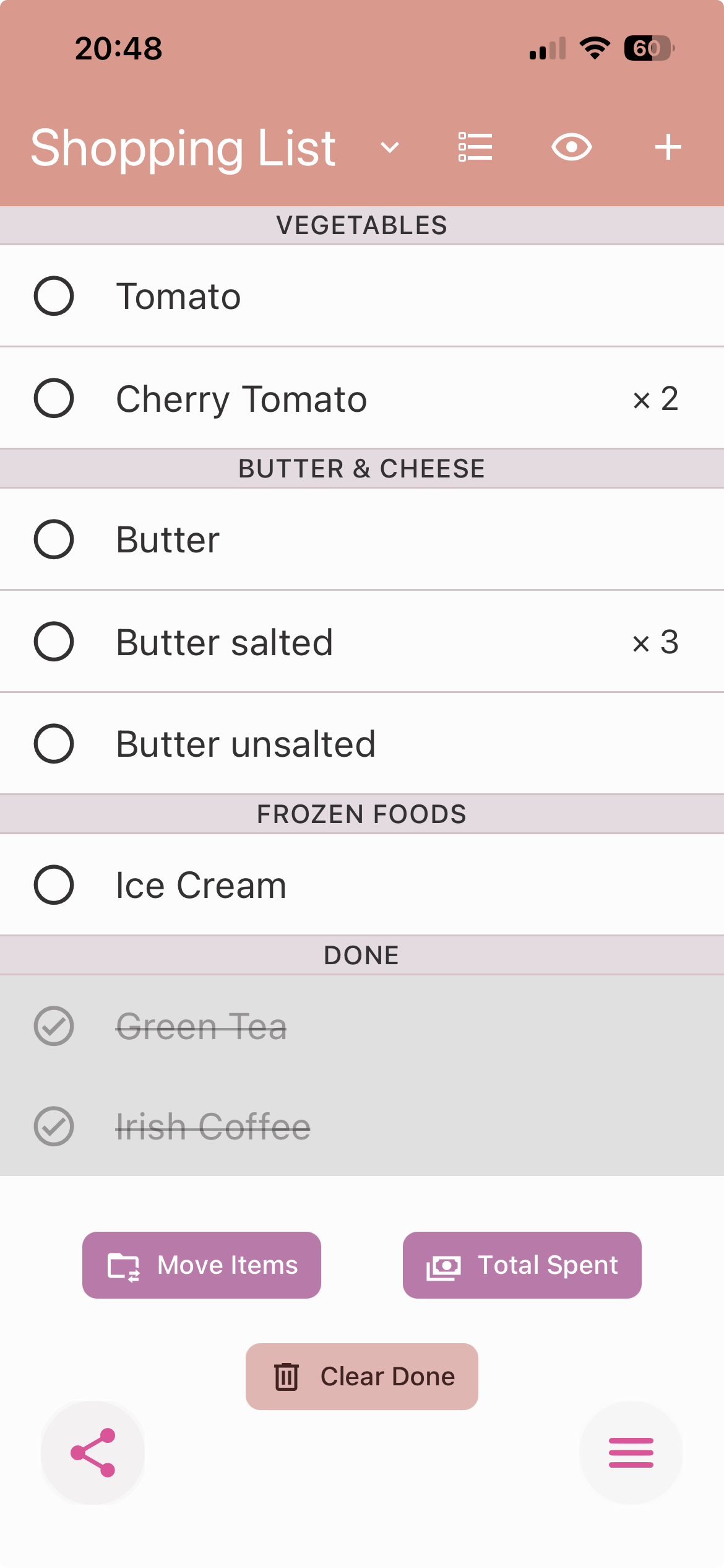 Add new item: Tap '+' icon at the right